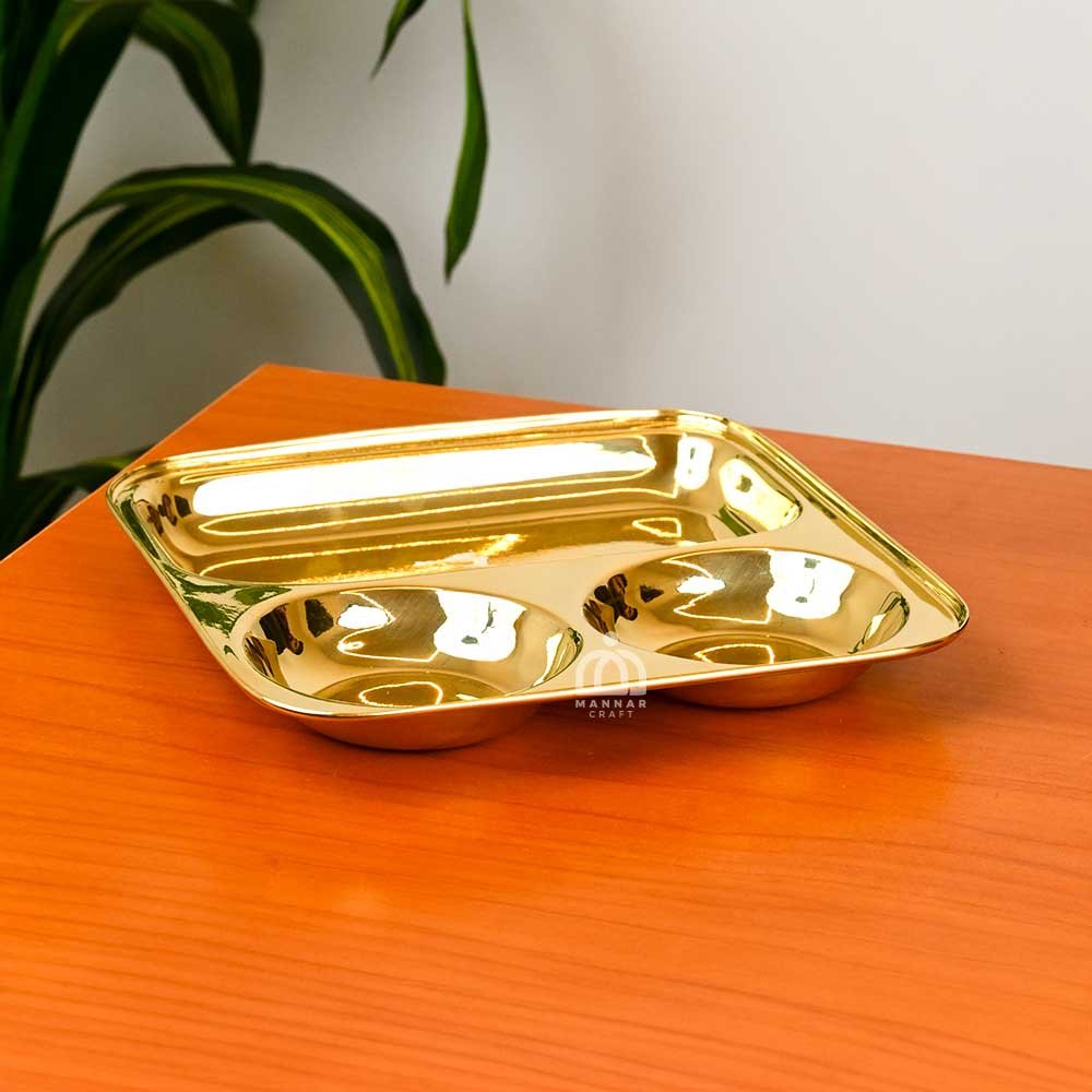 Enhance your dining experience with this exquisite Polished Brass Dinner Plate/Thali featuring extra deep round compartments, designed for serving a complete meal in style. Crafted from high-quality brass, this elegant serving tray reflects the charm of traditional Indian dining, while the polished finish adds a touch of luxury. Ideal for serving rice, curries, and other delicacies, its deep compartments keep your food neatly separated. Perfect for festive occasions, daily meals, or as a thoughtful gift, this durable brass thali is a timeless addition to your tableware collection.