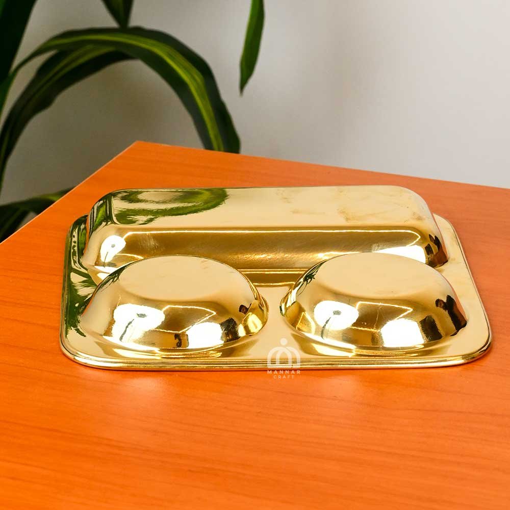 Polished Brass Small Dinner Plate/Thali with Extra Deep Round Compartments | Traditional Brass Serving Tray