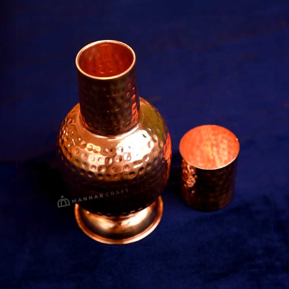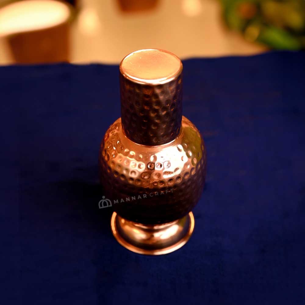 Elevate your hydration experience with this handcrafted 600ml copper water bottle. Made from pure copper, this bottle boasts a sleek design and Ayurvedic health benefits. Store water overnight for a natural purification process and enjoy the taste of copper-infused water. The unique lid doubles as a cup, making it perfect for the dining table or bedroom. This eco-friendly and reusable bottle is a healthy and stylish alternative to plastic.