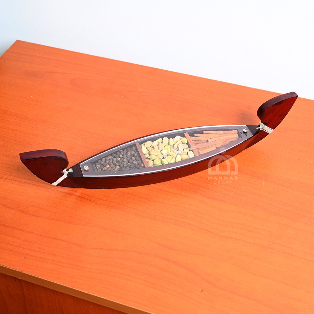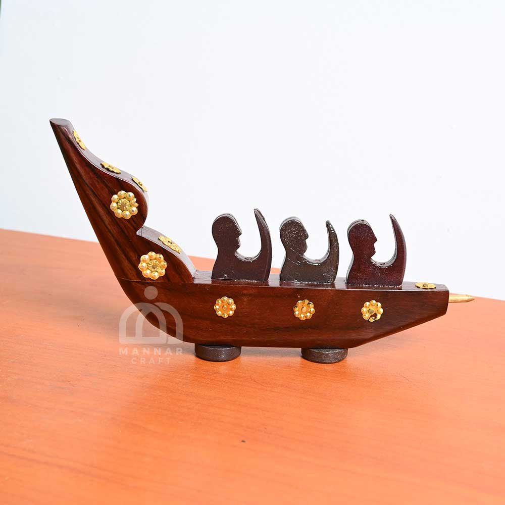 Embrace the charm of Kerala with this exquisitely handcrafted wooden houseboat. Made from high-quality wood, this miniature replica captures the essence of Kerala's iconic backwaters, adding a touch of coastal charm to your home decor.