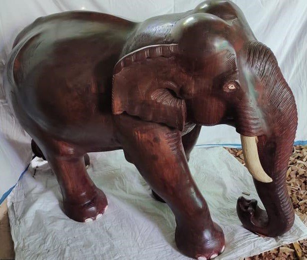 Add a touch of elegance and charm to your living or work space with our Rosewood Hand-Crafted Wooden Elephant Showpiece. Meticulously carved by skilled artisans, this exquisite piece is a perfect blend of tradition and modernity. Made from high-quality rosewood, it boasts intricate detailing and a smooth finish, making it a standout addition to any decor style. Ideal for living rooms, offices, or as a thoughtful gift, this elephant showpiece symbolizes strength, wisdom, and good fortune.