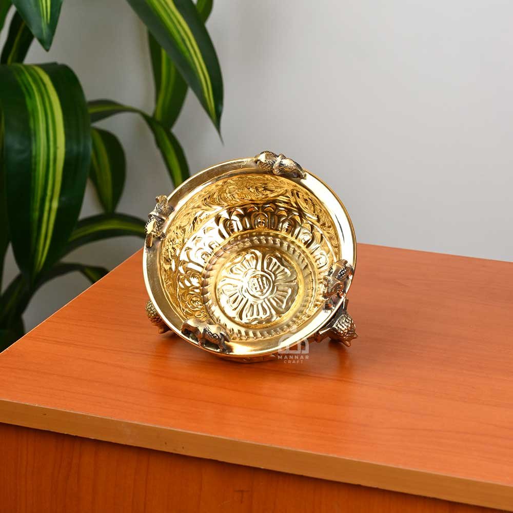 This set of 5 brass urli bowls is a thoughtful choice for home decoration, weddings, festivals like Diwali and Onam, and gifting, combining traditional artistry with functional elegance. A perfect blend of cultural charm and modern décor needs.