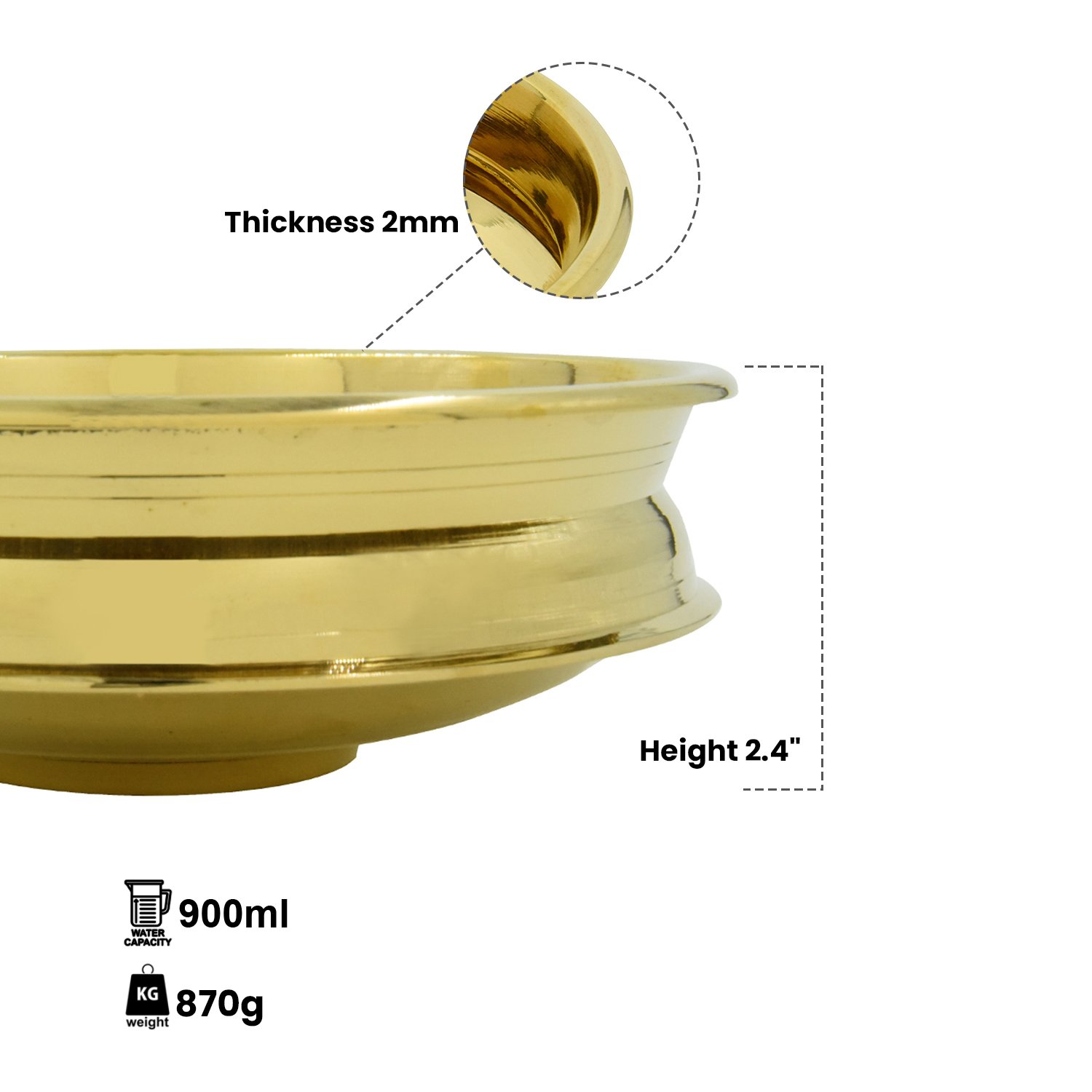 • Specification : Material: Brass, Height-2.4 Inch, Cubic Capacity-550 ml