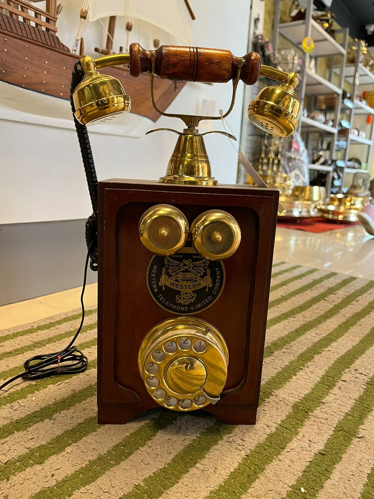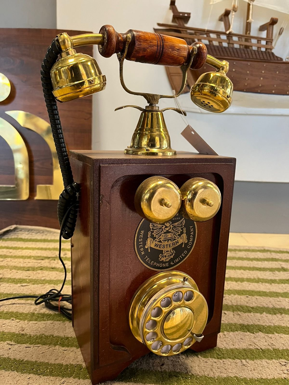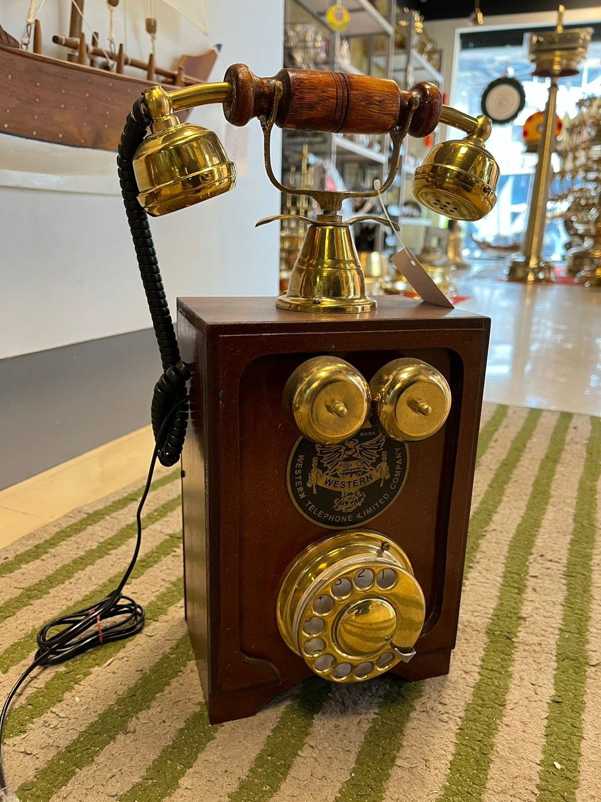 A truly classic design, this vintage telephone is perfect for adding a touch of elegance to any room. The rich brass and wood construction makes it a great conversation piece, and it also makes an excellent gift. The phone is functional and came be used as normal land line connection.