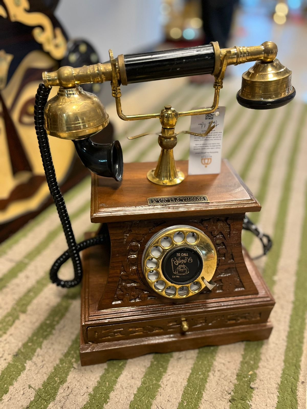 A truly classic design, this vintage telephone is perfect for adding a touch of elegance to any room. The rich brass and wood construction makes it a great conversation piece, and it also makes an excellent gift. The phone is functional and came be used as normal land line connection.