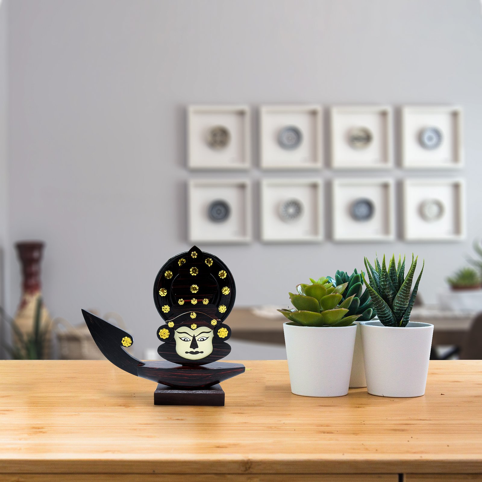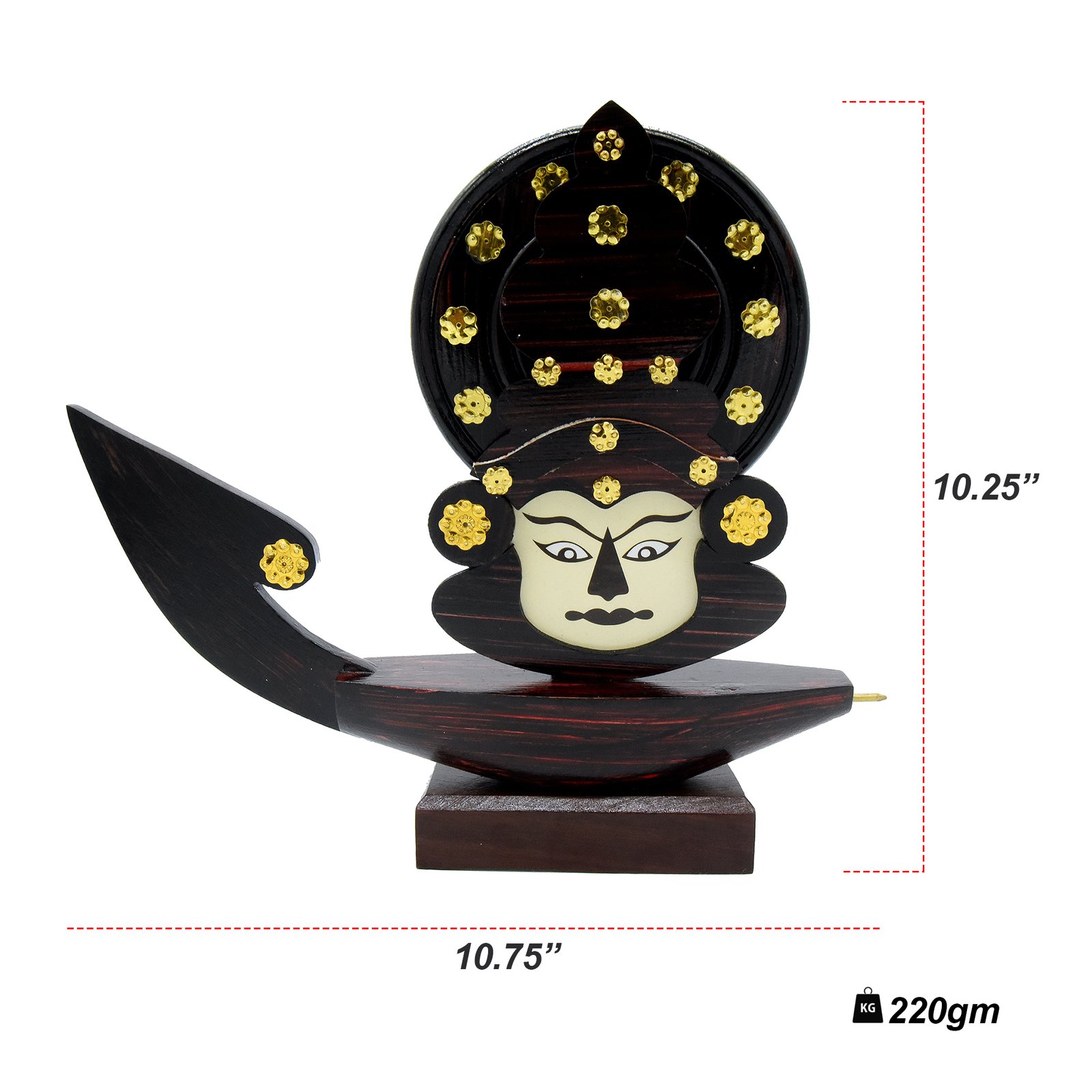 Wooden Kerala Traditional Boat Curio Miniature with Kathakali Face (10 Inch)